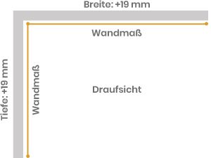 Eine L-Formation ermöglicht es, eine Ecke mit einem Textilrahmen zu gestalten. Sie besteht aus zwei Simple 19 Rahmen, die an einem vertikalen Carre-Profil befestigt sind. Hinweis: Bestellen Sie die Rahmengröße jeweils 19 mm breiter als das Wandmaß, damit der Rahmen exakt anschließt.